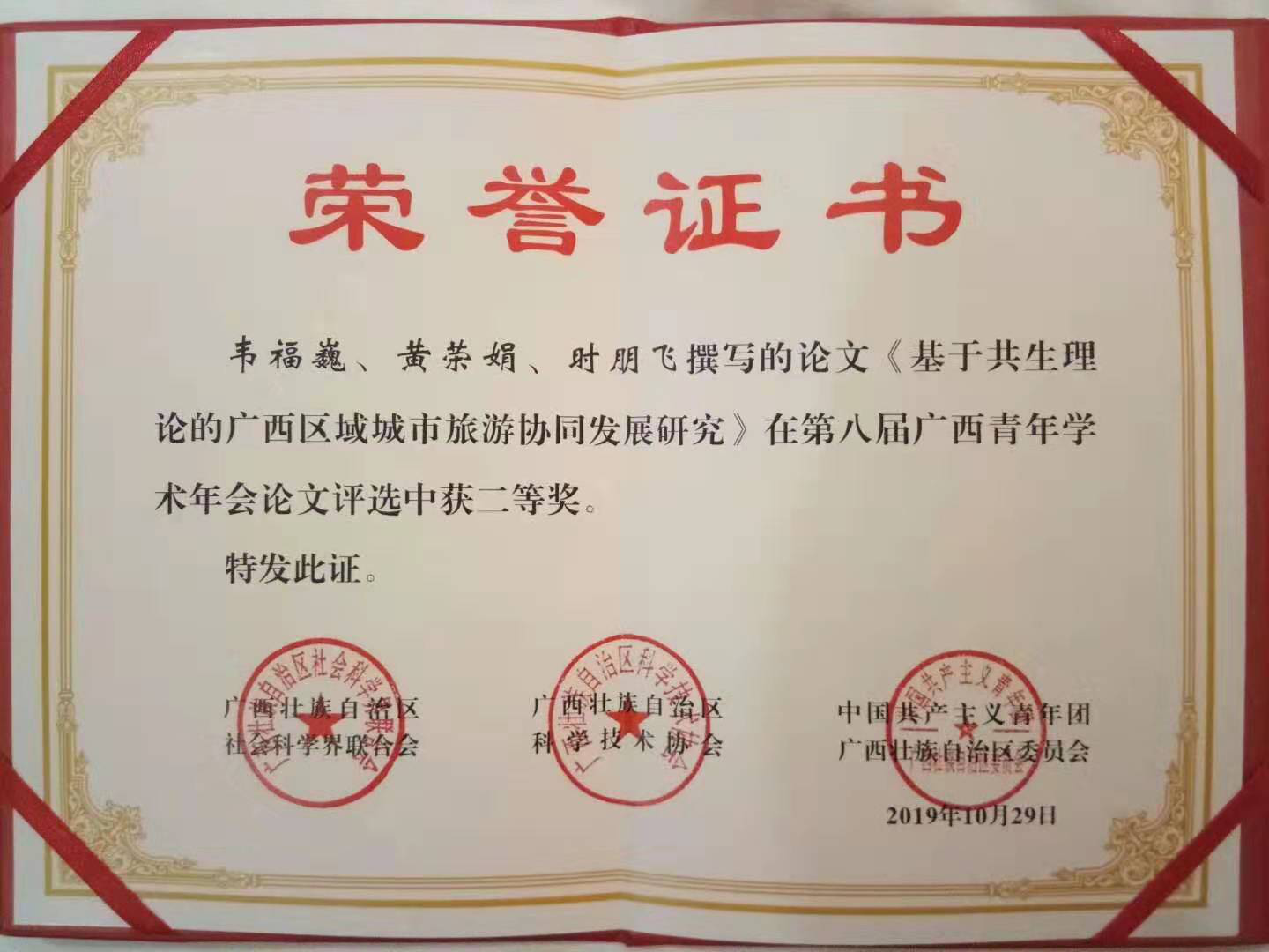 本届年会征集到论文329篇,其中社会科学类论文209篇,评出一等奖4篇,二等奖15篇,三等奖26篇;自然科学类论文120篇,评出一等奖5篇,二等奖15篇,三等奖30篇。年会对获奖论文进行了表彰。公司韦福巍老师和黄荣娟老师等合作的论文《基于共生理论的广西区域城市旅游协同发展研究》、王威峰老师和覃举东老师等合作的论文《广西旅游产业发展对农村居民的增收效应研究》分别在本次年会论文评选中获二等奖、三等奖。(通讯员 王威峰)