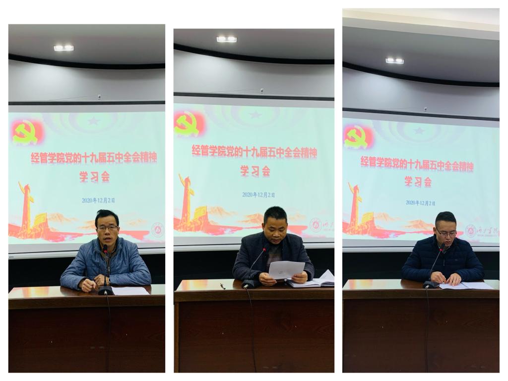 12月2日下午,公司在弘毅楼3-504召开全体教职工大会传达学习贯彻党的十九届五中全会精神,公司党委书记韦书觉,经理覃举东,副书记龚丁海,副经理谭玉龙、韦福巍以及全体教职工参加会议。会议由韦书觉主持。