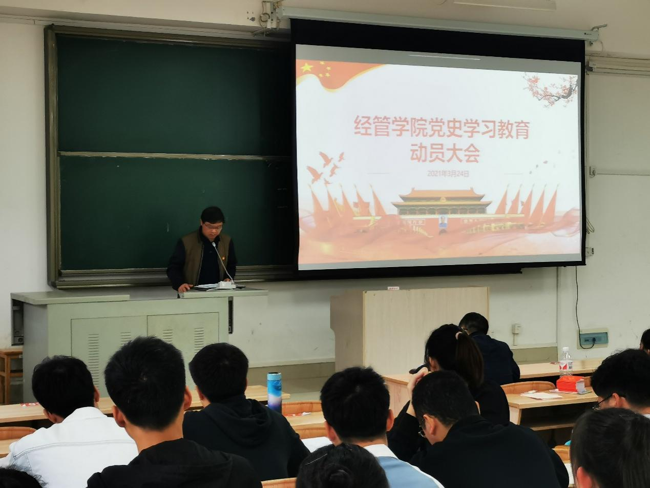 为深入学习贯彻习近平总书记在党史学习教育动员大会的重要讲话精神,认真贯彻落实公司党史学习教育的部署要求,2021年3月24日下午,经管公司员工党支部于弘毅楼2-205召开党史学习教育动员大会。党委书记韦书觉、副书记龚丁海以及全体员工党员参加会议。