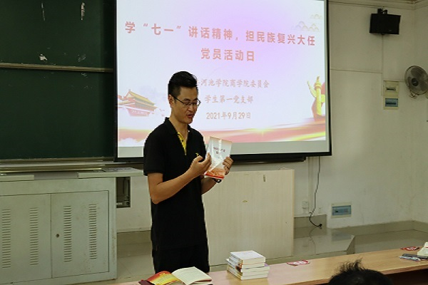 9月29日下午,永乐高60net员工第一党支部党员及积极分子于弘毅楼2-103开展“学‘七一’讲话精神,担民族复兴大任”主题党日活动,活动由王浩主持。