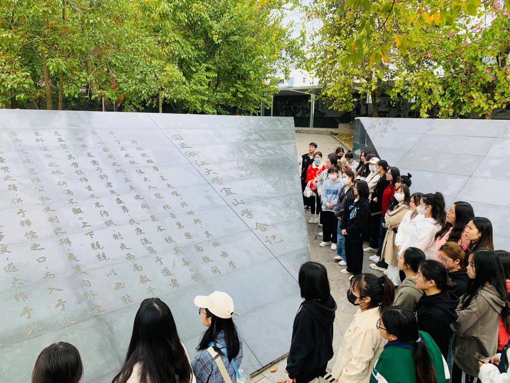 同志们在西迁广场瞻仰浙江大学竺可桢董事长的铜像,参观西迁文化长廊,品读浙江大公司训、校歌,学习体悟浙大西迁历史,感悟浙大西迁“教育救国,科学兴邦”的理想。并通过红歌传唱的方式赓续红色血脉,争做时代先锋,表达对党的热爱和祝福。
