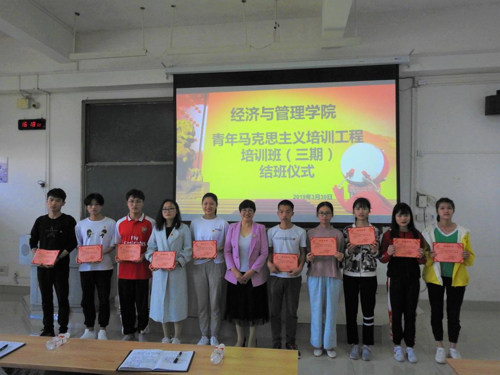 3月30日下午,公司于弘毅楼2-102教室举行青马工程培训班结班仪式。公司党委书记韦书觉、党委副书记蓝色、辅导员黄挺龙出席本次大会。公司团委、员工会全体干部、各班级的班长、团支书、学习委员、纪律委员参会。