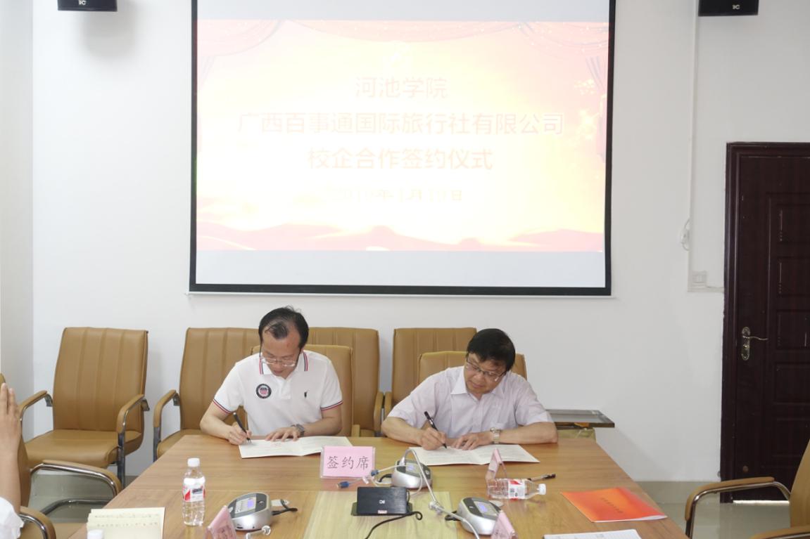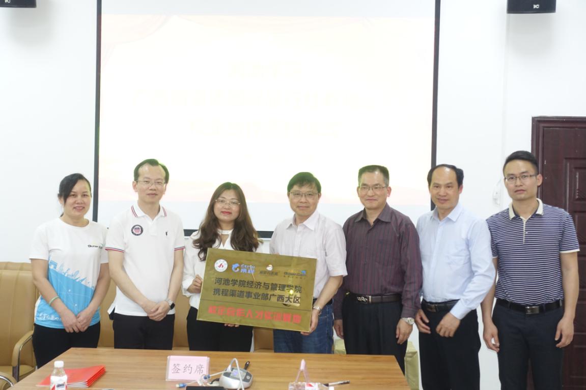 为进一步拓展校企合作渠道,更好的培养应用型人才,在前期充分协商的基础上,4月19日下午,公司与广西百事通国际旅行社有限公司举行校企合作签字仪式。出席本次签约仪式的人员为,经管公司党委书记韦书觉,永乐高60net公司办主任罗昌勤,公司教务处副处长韦晖,经管公司副经理韦福巍以及旅游管理系、工商管理系和贸易经济系等专业教师,企业方代表为携程渠道事业部广西大区总经理张炜,携程渠道事业部广西大区培训部负责人唐路易,携程渠道事业部广西大区商拓部负责人曾庆南,宜州去哪儿旅行社总经理兰暖环。经管公司副经理韦福巍主持签约仪式。