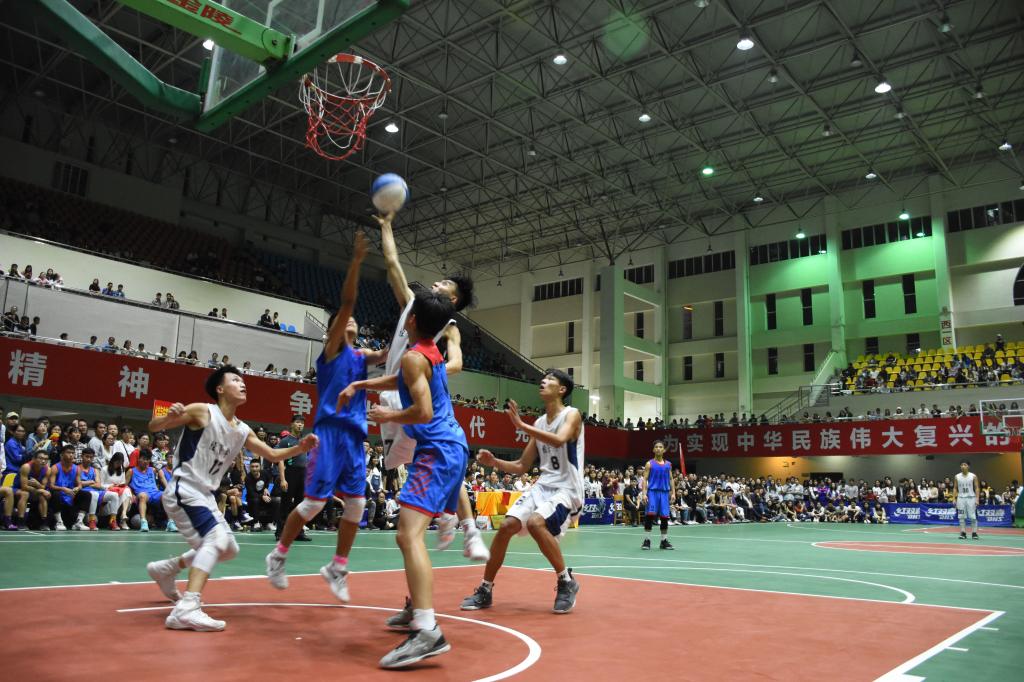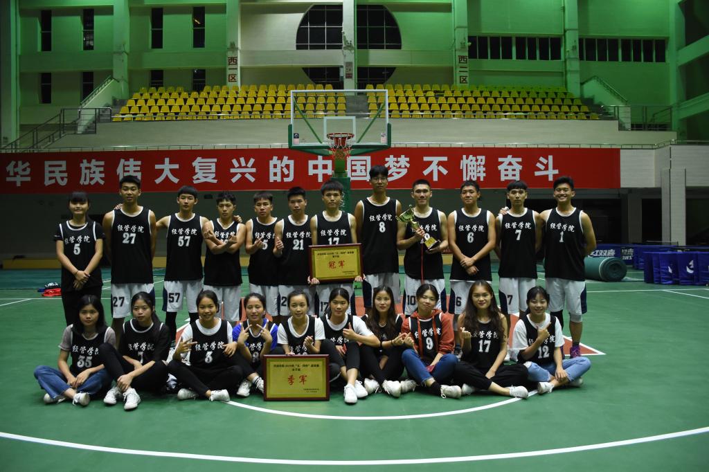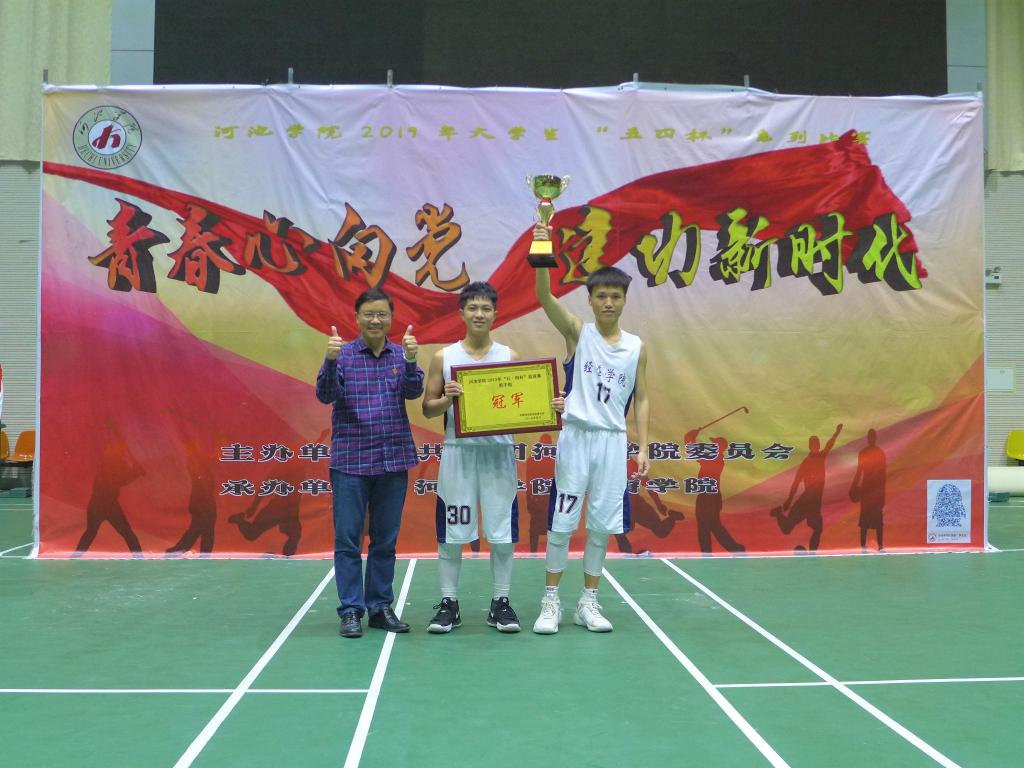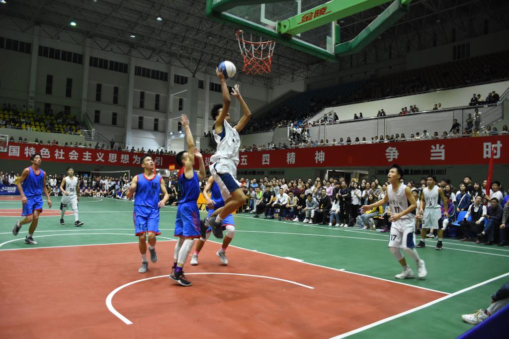 精彩而又令人期待的决赛哨声响起了,赛场上双方球员积极投入、全力以赴。我方球员夺球以矫健熟练的动作迅速传球,直逼篮板,率先夺得首球。紧接着球场上出现了你争我夺的现象,我方球员在夺球后左晃,右晃,过人,起跳,钩手,上篮,一次次转身跳投,时而三分远投。他们身行矫健,盖帽的动作挥洒自。场下,观众的加油声、掌声、欢呼声一阵响过一阵。在第三节结束后打成了44比44的平局,比分开始呈交替上升,以至于局势一度呈胶着状态。本场比赛结束仅剩几秒,围观的观众紧张得摒住了呼吸,但比分随着化生队的最后一次罚篮投中而打成了平局。赛场上再度进入了激动的决胜阶段,以加时赛来决出最后的胜负。前来观看的双方拉拉队也激动地大声加油。经过几番较量,我方以77比73的比分摘得冠军。比赛后的颁奖仪式由蓝色为获得季军的女篮颁发体育道德风尚奖、韦书觉为男篮冠军队颁发了奖杯等,并合影留念。