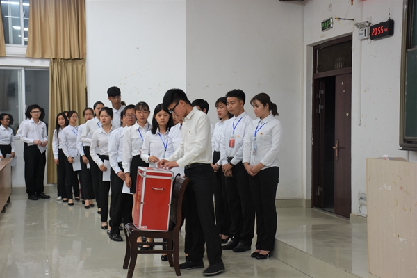 5月12日晚,公司于弘毅楼1-105教室举行第八届团委员工会主席团换届选举大会。公司党委书记韦书觉、团委书记李云涛、文学与传媒公司团委书记于晓平、公司辅导员黄挺龙、王忠文应邀出席本次换届大会,参与本次换届大会的还有来自各班的班级代表和校团委员工会、社联、志联、各二级公司代表等。