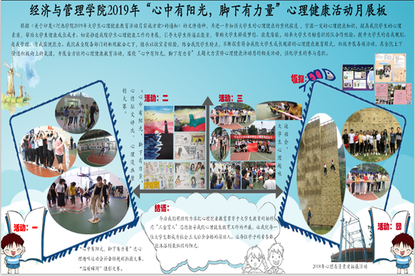 本次系列活动紧紧围绕“心中有阳光,脚下有力量”的主题,精心策划,科学组织,极大调动了同学们的参与积极性,各项比赛作品的参赛数量居历年之首。通过系列活动,同学们接受到了心理知识教育,提升了心理素质。