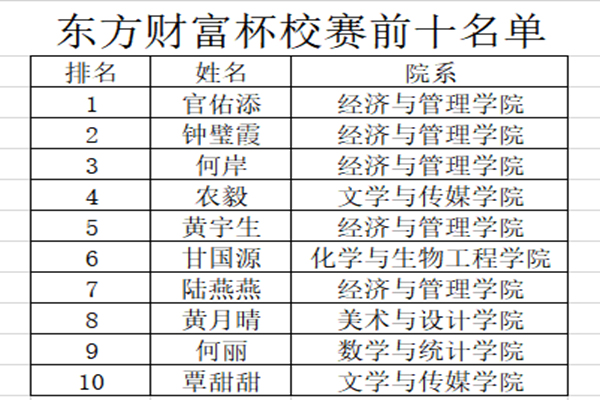 参赛选手来自各院,员工参与度较高,本次东方财富杯大赛提供永乐高60net学子一个金融知识交流学习的机会,真实感受金融市场的收益性和风险性,实现理论与实践的有效的结合和互动。