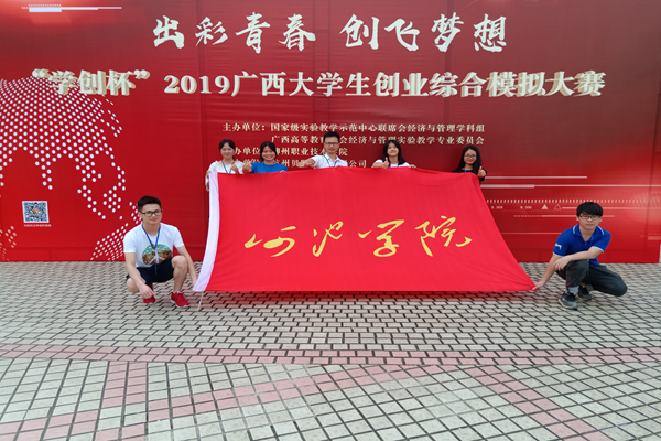 经过激烈的校内选拔赛,由经济与管理公司市场营销专业陈美财、陶红艳、陈肖宇组成的“萌队”团队和贸易经济专业钟丹、江浩光、欧文住组成的“倔强青铜变黄金”团队表现突出,以优异成绩参加广西区总决赛。在决赛中,经过一整天紧张而激烈的角逐,虽然比赛中途出现一些波折,但同学们沉着应对,以饱满的热情,巧妙运用所学知识和所积累的经验进行比赛。在李云涛、黄挺龙两位老师的带领和指导下,最终“萌队”团队获广西区总决赛一等奖;“倔强青铜变黄金”团队获广西区总决赛二等奖。