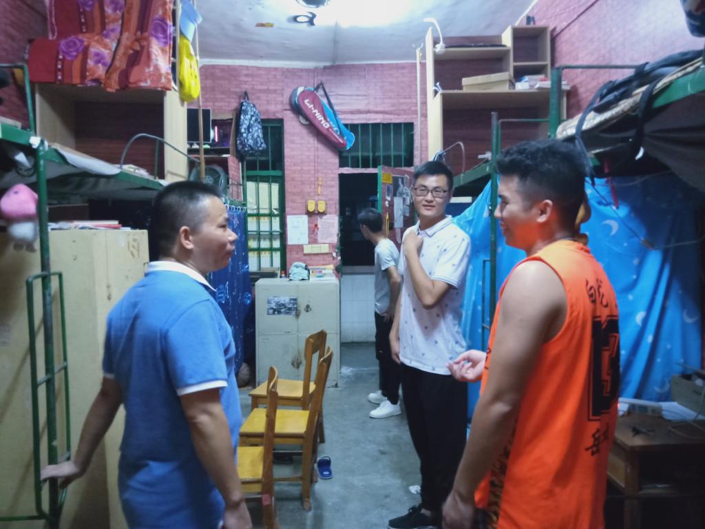 新学期伊始,为了解公司员工新学期的精神面貌、思想状况和学习计划,9月8日晚,由公司党委书记韦书觉、党委副书记龚丁海、副经理谭玉龙、副经理韦福巍、各年级辅导员、各班主任分别到雅园二栋和静园二栋走访员工宿舍。