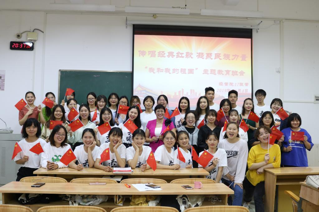 为了进一步加强我班员工爱国主义教育,激发员工的爱国情感,增强员工的责任担当意识,2019年10月8日晚上7:30,17旅游管理在弘毅楼3区303举办了“传唱经典红歌,凝聚民族力量”——“我和我的祖国”主题教育班会。本次活动由蓝色老师领导,本班莫芯贤、刘桂华同学主持。