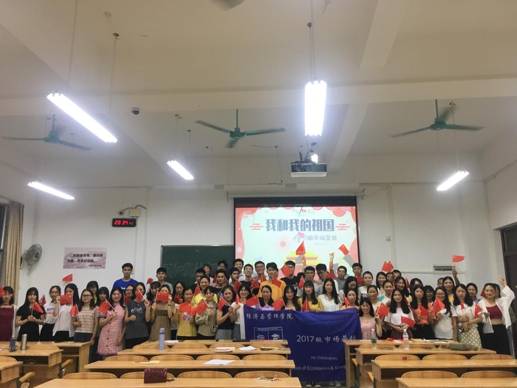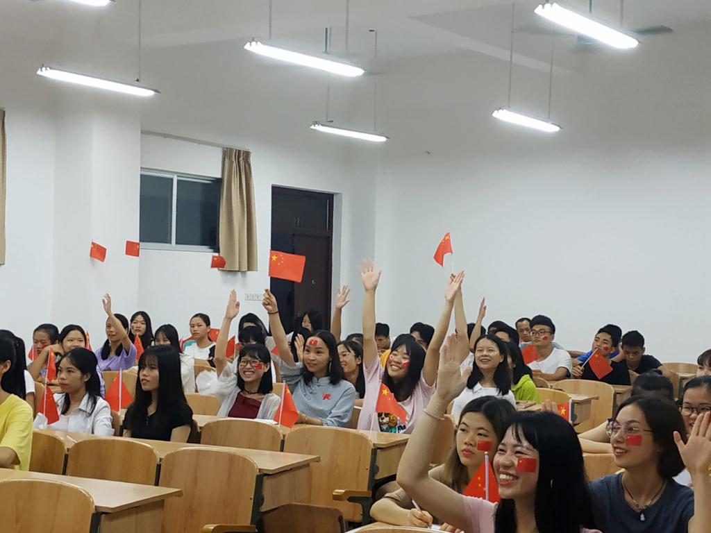 本次活动中各班以“我和我的祖国”为主题,遵循“知-情-意-行”的教育规律,纷纷组织以“学起来”“唱起来”“讲起来”“做起来”为主要内容的教育活动。其中,“学起来”以课堂教学、主题班会等形式,深入学习习近平新时代中国特色社会主义思想,深入学习党史国史、改革开放史、社会主义发展史,不断增强师生“四个自信”。17、18级大多数班级通过PPT演示,观看纪录片《我和我的祖国》片段等等进行爱国主义教育;“唱起来”以歌咏活动、文艺演出等形式唱响主旋律、讴歌新时代,展现公司师生的良好精神风貌。17旅管班的"传唱经典红歌,凝聚民族力量"主题班会,以宿舍为单位逐一向全班介绍一首红歌并深情演唱,增强活动的时代感、吸引力、感染力;“讲起来”组织师生讲述“我与祖国共成长”的励志奋进故事,分享成长体会,展现家国情怀。17市营等班级组织员工谈自己的爱国感想进行爱国知识竞赛。19级新生班由班主任带头分享受国故事,弘扬爱国情怀;“做起来”以社会实践、志愿服务、参与国庆活动等形式,以实际行动表达爱国热情。