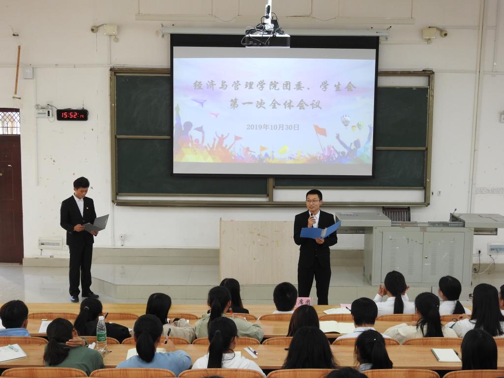 为了促进新老成员的交流与沟通,让实习干事更深入地了解团委、员工会,以推进新学期工作更好地开展,10月30日下午,公司团委、员工会于弘毅楼1-105教室召开第一次全体会议。与会人员有主席团成员、全体团学干部及实习干事,本次会议由唐浩文主持召开。