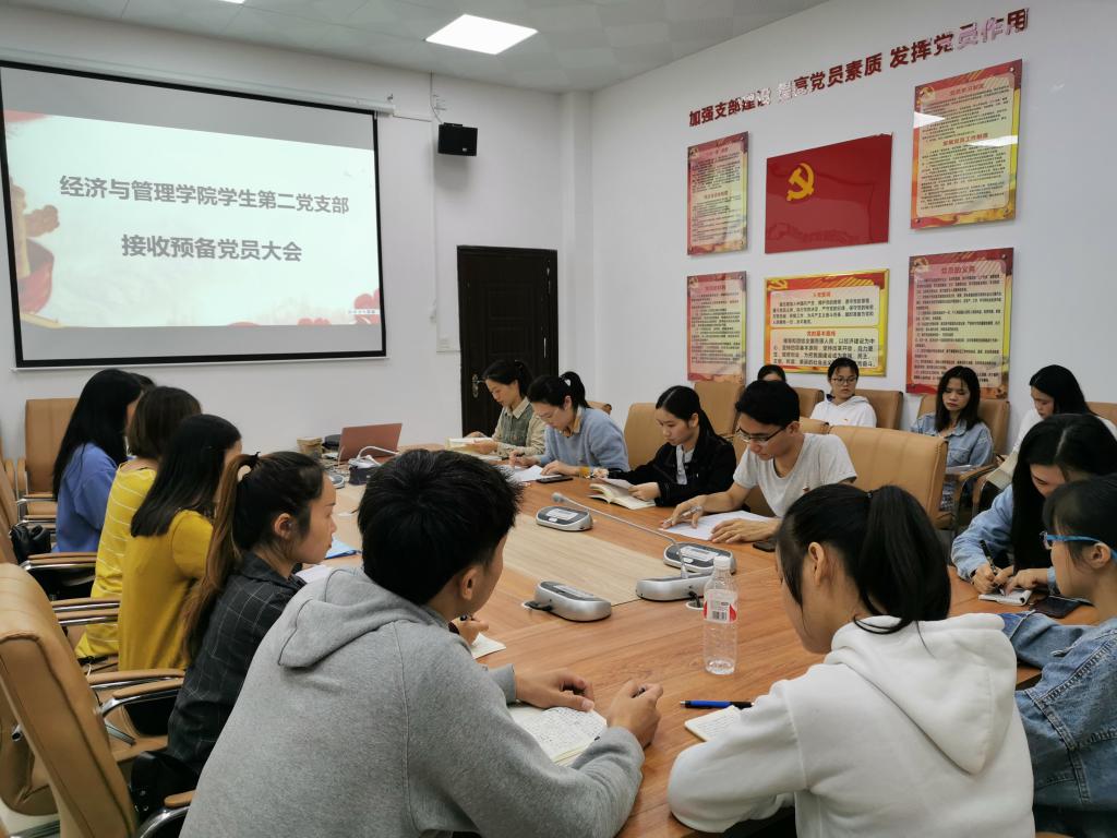 为了吸纳、培养优秀党员,壮大党员队伍,为支部将来的发展打下坚实基础。2019年11月16日晚,经济与管理公司员工第二党支部于弘毅楼2-208会议室召开预备党员接收大会,该会由经管公司第二党支部江玉婷同志主持,支部书记以及全体党员同志、预备党员及其下半年发展对象参与此次会议。