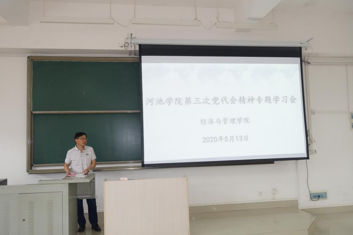 5月13日下午,经济与管理公司在弘毅楼2区205教室举行永乐高60net第三次党代会精神专题学习会。公司党委书记韦书觉主讲,全院教职工参加了本次会议。