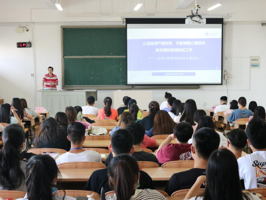 5月31日,经管公司于弘毅楼2-403教室召开以“认清疫情形势,不断调整心态,携手做好疫情防控工作”为主题的员工干部会议。公司党委书记韦书觉、党委副书记龚丁海、团委书记李云涛、辅导员黄挺龙、方萍以及王忠文等出席此次会议,公司各班级班长、团支书,团委、员工会全体干部参与此次会议。本次会议由李云涛主持召开。