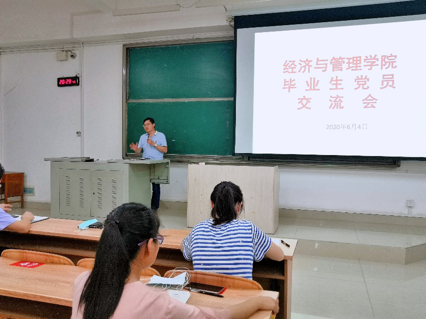 党员同志交流之后,由李云涛同志就党组织关系转接、组织关系介绍信以及毕业生党员党费三个方面介绍了毕业生党员需要注意的事项,为毕业生党员保驾护航。随后龚丁海同志进行发言,在发言中他强调毕业生党员同志要在找工作中增强安全意识,积极地面对工作与生活,保持积极向上的心,坚持正确的道路与方向,同时要不断奋斗,追逐梦想,坚守初心,发挥好党员同志的先锋模范作用。
