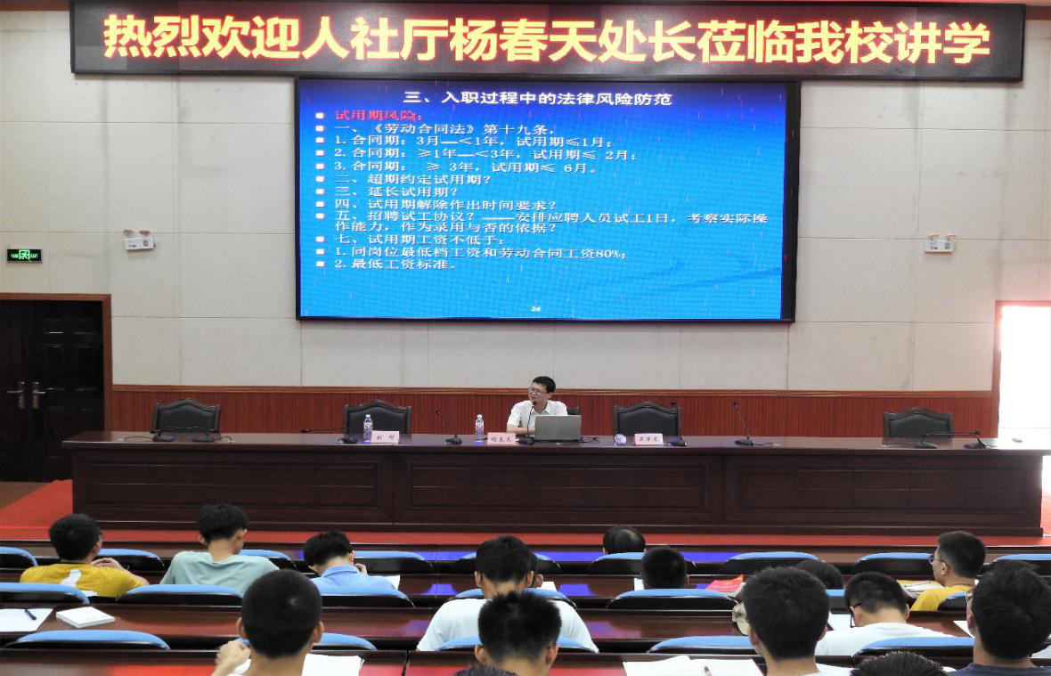 为促进员工就业和提升员工防范入职风险能力,加快人力资源管理专业转型发展,经管公司特别邀请自治区人社厅社保征缴处杨春天处长作专题报告。6月13日下午3点,在弘毅楼1-205报告厅,杨春天处长应邀为经管公司员工作“劳动者入职管理争议处理实务”的专题讲座。