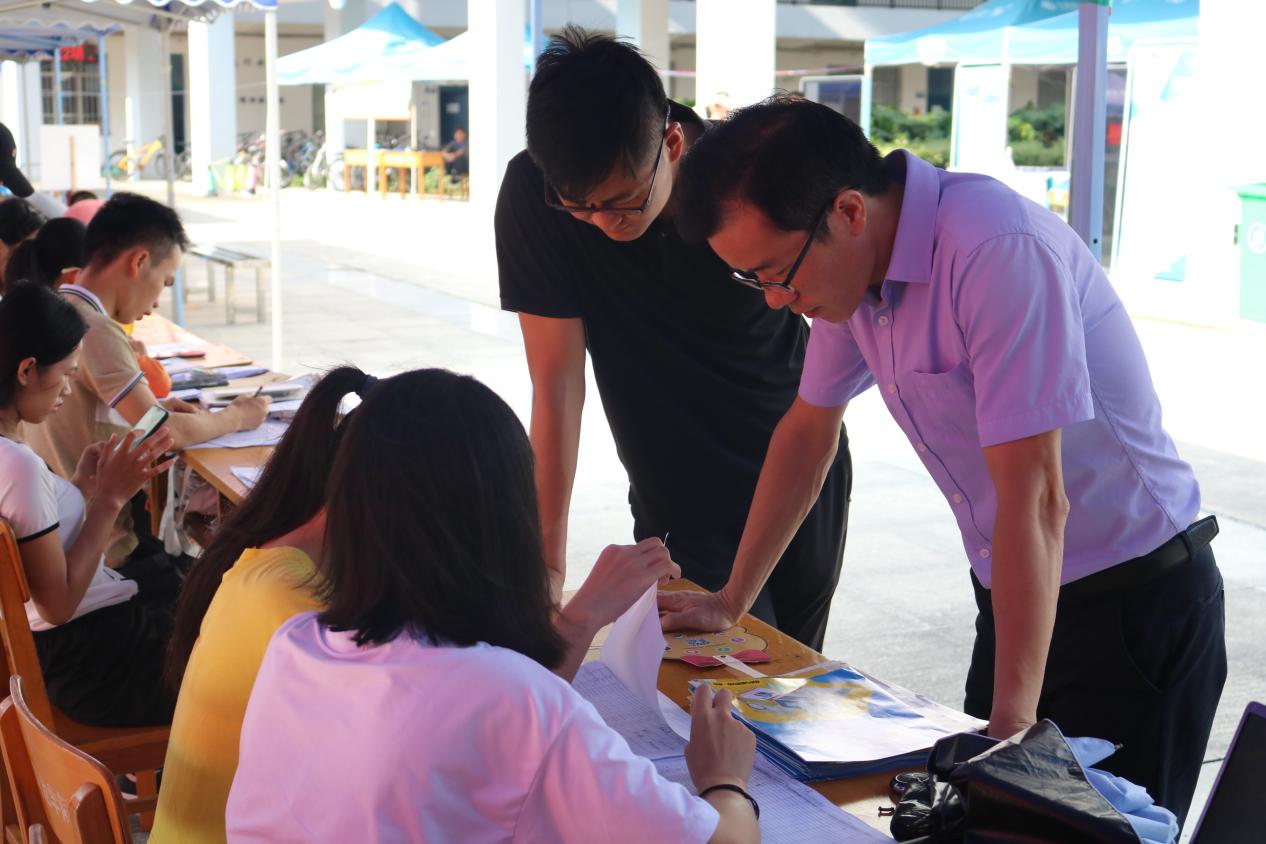 在迎新前,公司领导就迎新工作各方面作了精心部署,以确保迎新工作的顺利开展。9月14日晚,团委、员工会干部们紧张忙碌地布置公司迎新大本营。15日早上,迎新工作人员及志愿者早早来到迎新大本营作最后的布置并熟悉注册流程。之后,新生和家长陆续来到公司,迎新工作人员有条不紊的进行各项工作,热情接待每一位新生,带领她们到注册处进行身份核验、办理入学登记手续、领取一卡通和宿舍钥匙,并引导她们入住员工宿舍。15日中午,12名经管志愿者在教师黄挺龙、韦劼和程恋婷老师的带领下,前往宜州火车站迎接2020级新生,在站外检验健康码,测量体温;16日下午,在全体迎新工作人员的共同努力下,迎新工作圆满结束。
