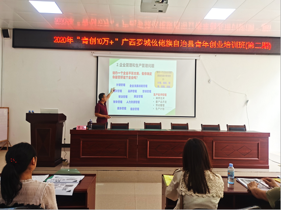 8月21日罗城共青团在县易地扶贫搬迁安置点仫佬家园举办2020年“青创10万+”广西罗城仫佬族自治县青年创业培训班(第二期)——易地扶贫搬迁安置点专场,莫凯老师受邀进行创业培训。而后,9月10日受环江县团县委邀请为150多名农村青年(含140多个村的团支书、农村致富带头人、有志农村创业青年等)进行题为《新冠肺炎疫情背景下环江县农村青年如何创业?》的专题培训。