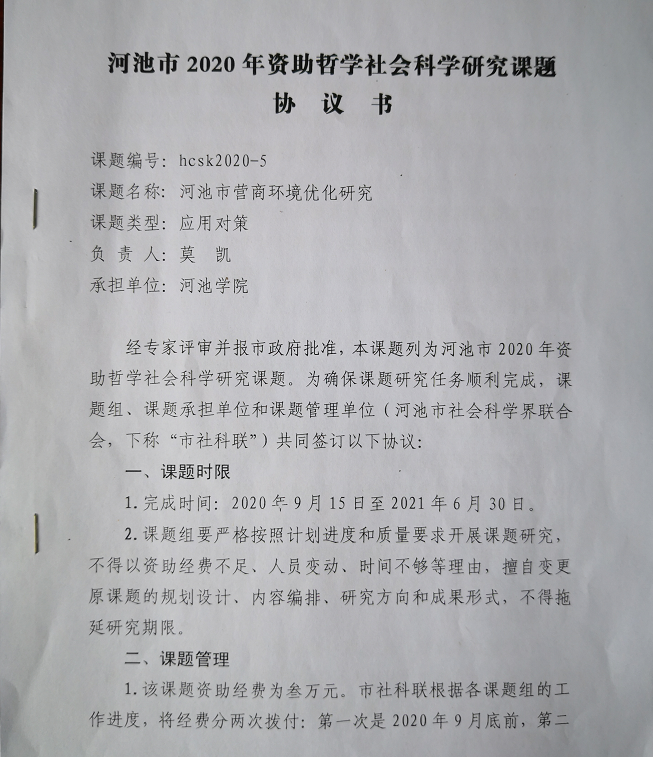 据悉,自2016年河池市资助哲学社会研究课题开展以来,经济与管理公司每年均有教师获得该类项目的立项并顺利结题,截止今年共有7项项目成功立项,其中今年新增的立项与结题项目均为莫凯老师和王威峰老师主持的第二项河池市资助哲学社会研究课题,充分体现了公司教师将科学研究聚焦地方经济发展现实问题,坚持在服务地方方面献计献策。