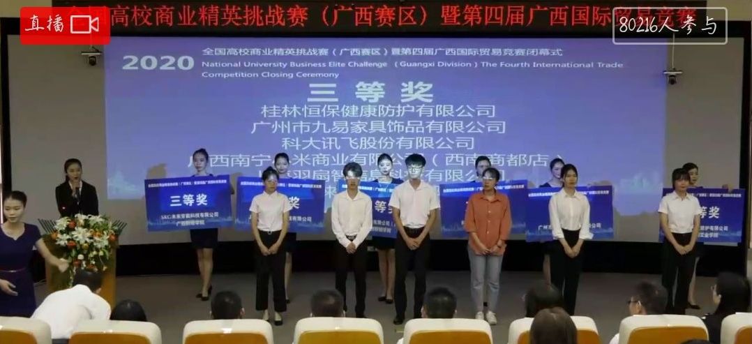 广西国际贸易竞赛是检验广西高校国际化商务人才教学改革成果,展示国际化商务人才通用技术和职业能力,考察参赛队的团队协作能力,提升综合素质,增强老员工的就业能力,培养可持续发展、满足企业需要的高素质高技能型人才。目前,广西等教育行政主管部门已将高校商业精英挑战赛国际贸易竞赛纳入本地区的学科竞赛计划。未来,公司将继续积极参与竞赛并再创佳绩。