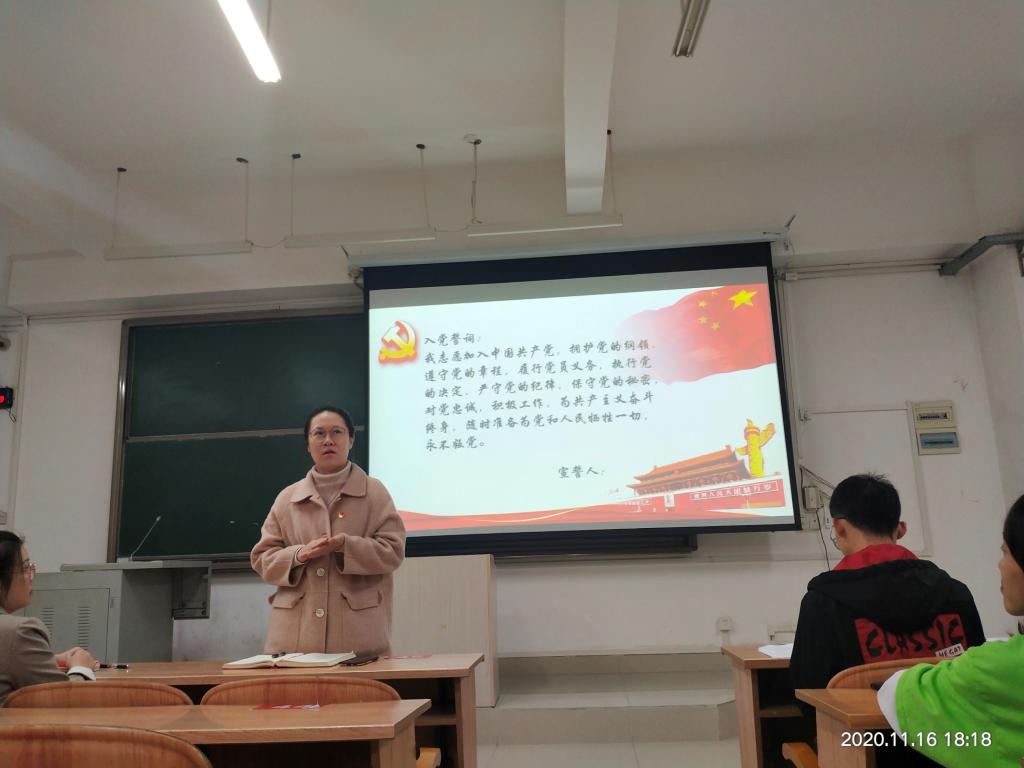 会议由宋江涛同志宣读转正及接受预备党员会议流程,赖勇群等五位发展对象相继宣读入党志愿书,汇报自己对党的认识,以及学习党章的体会,并由入党介绍人介绍其有关情况。经支部讨论决议,上述5名同志均全票通过预备党员的表决。随后会议讨论钟炜、严碧铭两位预备党员的转正问题。预备党员宣读转正申请及汇报预备期间表现,支部大会进行讨论并无记名投票表决,一致同意上述2名同志按期转为中共正式党员。