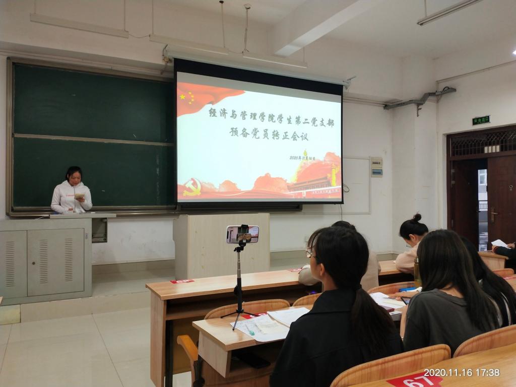 11月16日下午,经管公司员工第二党支部在弘毅楼2-403召开接收预备党员及党员转正会议。出席本次会议的有支部书记李云涛同志,韦虹羽同志、正式党员6名、预备党员13名及5名发展对象。会议由宋江涛同志和李超梅同志主持召开。