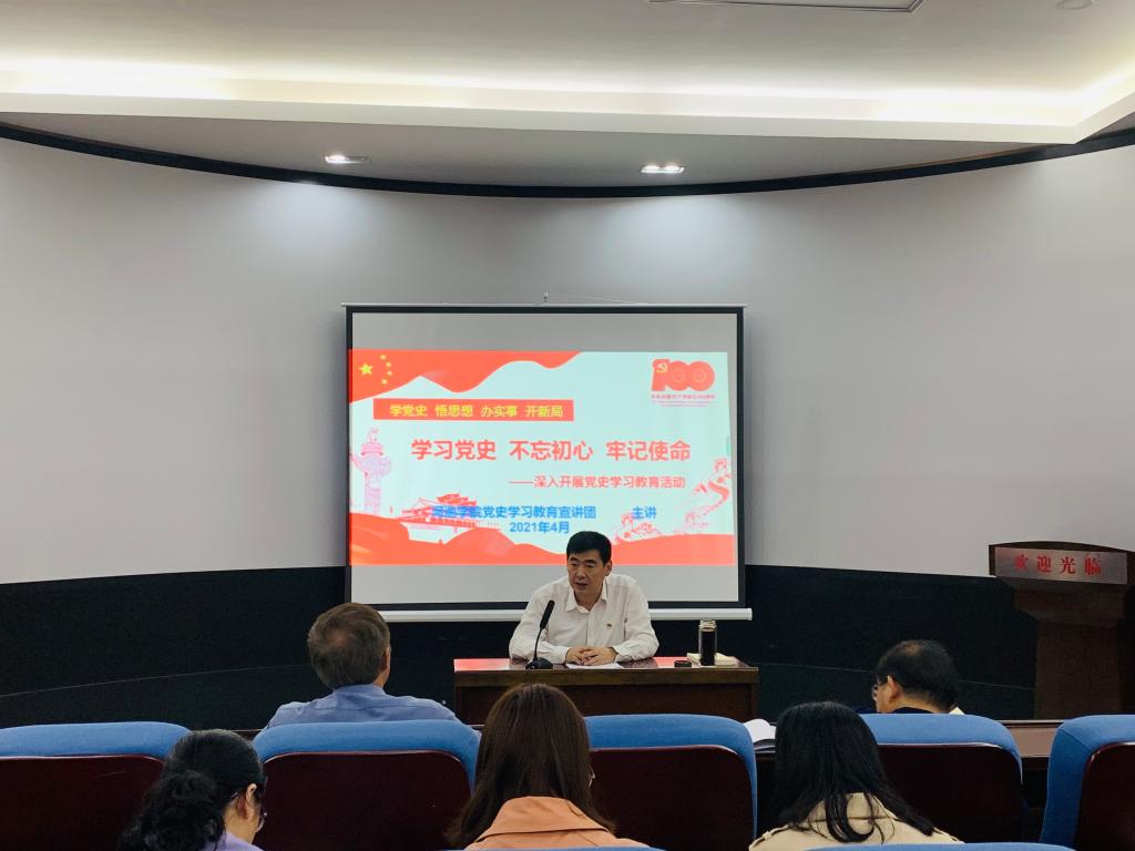 黄小敬从认真把握党史学习教育的总体目标、深刻领会习近平总书记关于党史的重要论述、全面了解党的百年奋斗的光辉历程和历史性贡献、深刻感悟中国共产党的初心和使命、贯彻落实党史学习教育的措施要求五个方面进行详细解读和阐述。同时强调,党史学习教育“正当其时,十分必要”。全党同志要做到学史明理、学史增信、学史崇德、学史力行,切实将党史学习教育与公司中心工作相结合,掀起学党史、悟思想、办实事、开新局的热潮;将党史学习教育与立德树人相结合,教育引导员工知史爱党、知史爱国,更好传承红色基因、牢记初心使命。