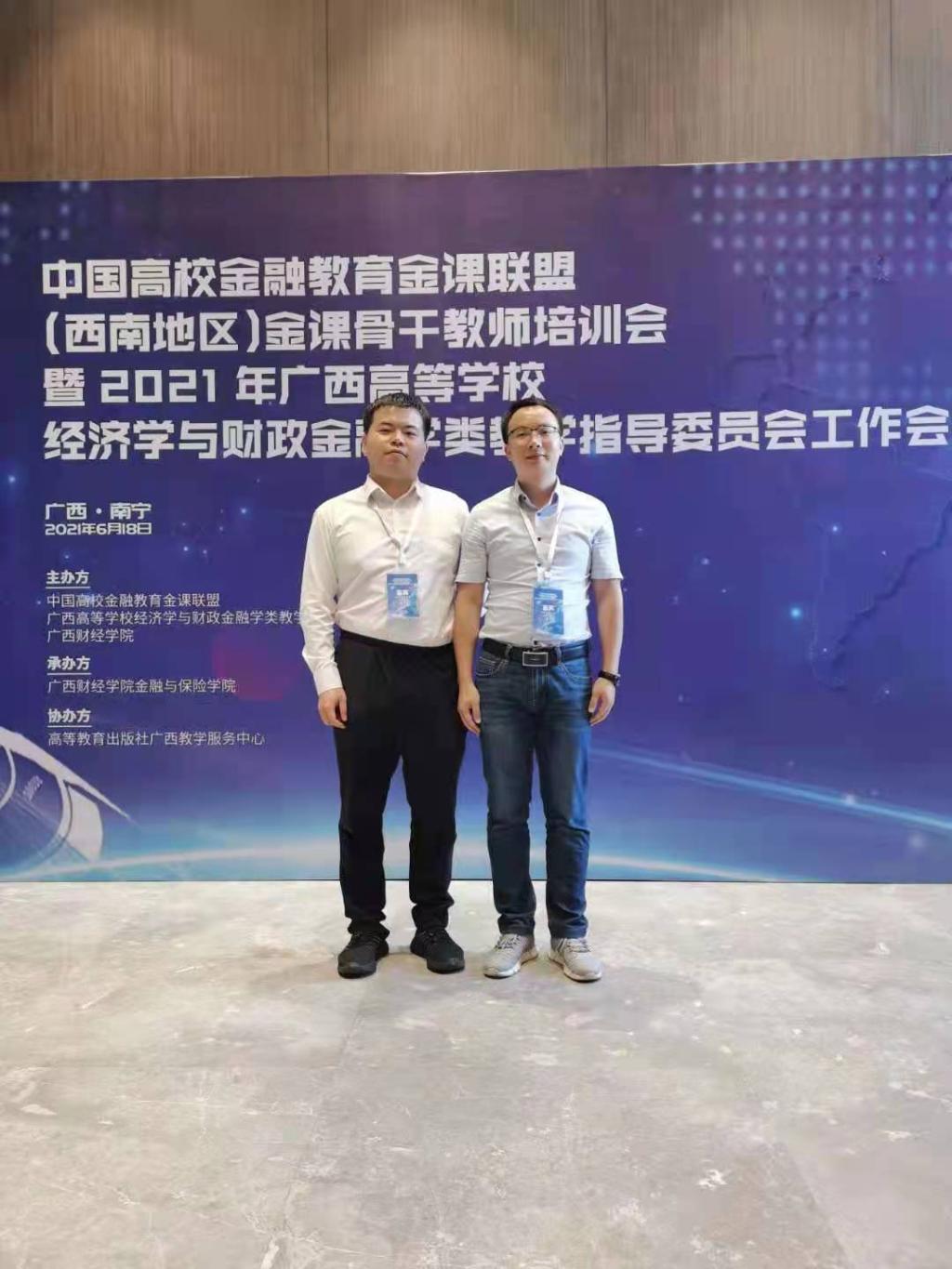2021年6月18日,由广西高校金融教育金课联盟、广西高等公司经济学与财政金融学类教学指导委员会、广西财经公司主办的首届中国高校金融教育金课联盟(西南地区)金课骨干教师培训会在广西南宁举行,来自中央财经大学、西南财经大学等近25所高校100余名教师参加了本次培训会。公司贸易经济教研室教师王威峰、韦劼应邀参加本次培训会。