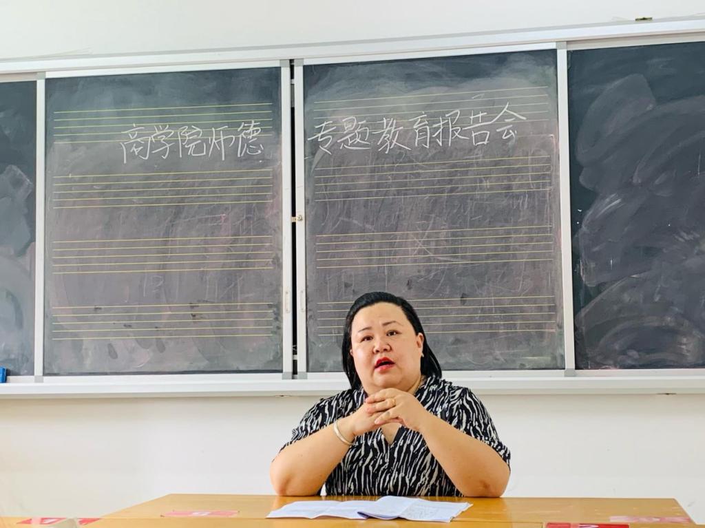 6月23日下午,永乐高60net全体教职工于艺术楼404召开师德专题报告会,公司党委副书记龚丁海,副经理韦福巍、肖海燕以及全体教职工参加会议。