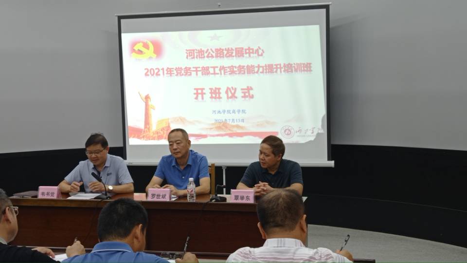 为扎实开展党史学习教育,进一步提升地方党务干部的政治素质和业务能力,7月13日上午,公司承办的河池公路发展中心2021年党务干部工作实务能力提升培训班顺利开班。河池公路发展中心主任罗世斌、公司党委书记韦书觉、经理覃举东参加仪式。开班由韦书觉主持。