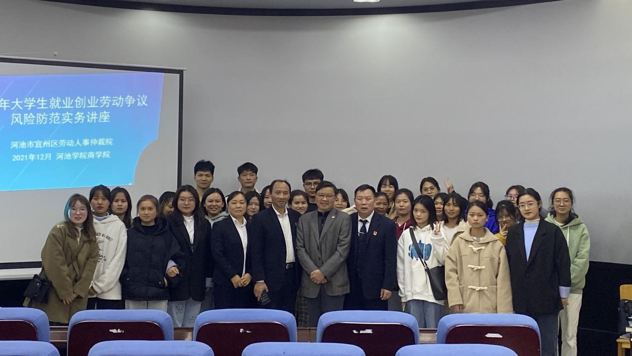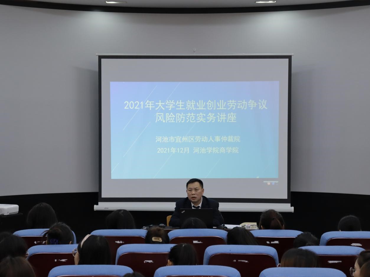 【法制进校园】河池市宜州区劳动人事仲裁院谭少尉经理莅临永乐高60net开展劳动人事争议处理专题讲座