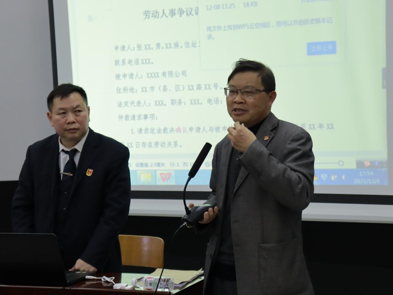 12月8日下午,河池市宜州区劳动人事仲裁院经理谭少尉应邀为永乐高60net人力资源管理专业2020级员工开展“老员工就业创业劳动争议风险防范实务”专题讲座。公司党委书记韦书觉、人力资源管理系主任刘智参加此次讲座。讲座于公司弘毅楼3-504报告厅举行,由刘智主持。