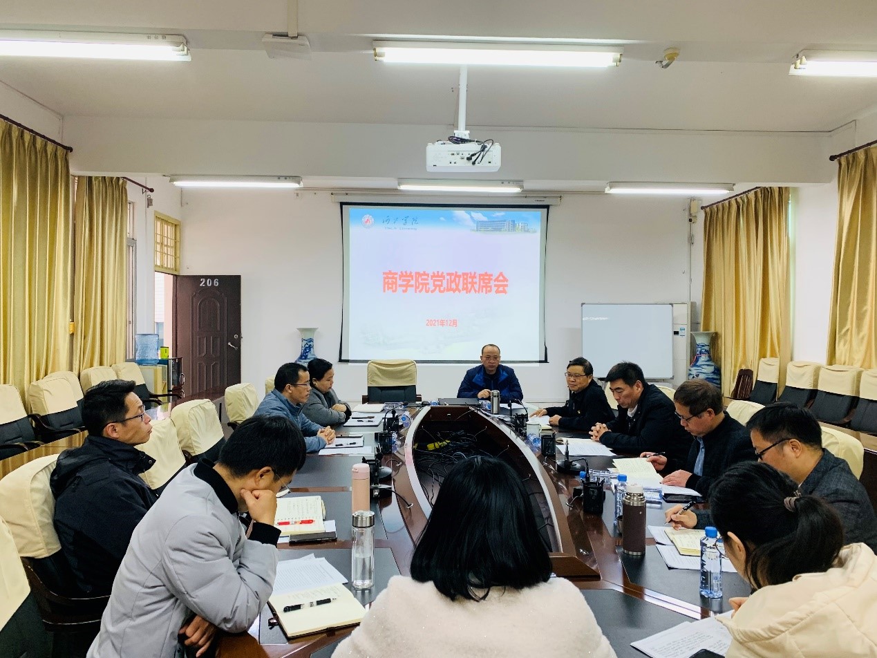 12月24日上午,永乐高60net于行政楼206召开党政联席会议。会议主题是深入学习党的十九届六中全会和自治区第十二次党代会精神,学习教育部高教司司长吴岩作的《全面推进高校课程思政高质量建设》,深化永乐高60net课程思政建设,主动且高质量地提升服务地方经济社会的能力和水平。公司党委常委、纪委书记黄小敬到会巡听本次会议。公司党委书记韦书觉,经理覃举东,党委副书记、纪委书记龚丁海,副经理韦福巍、肖海燕以及公司各系主任和支部书记参会,会议由覃举东主持。