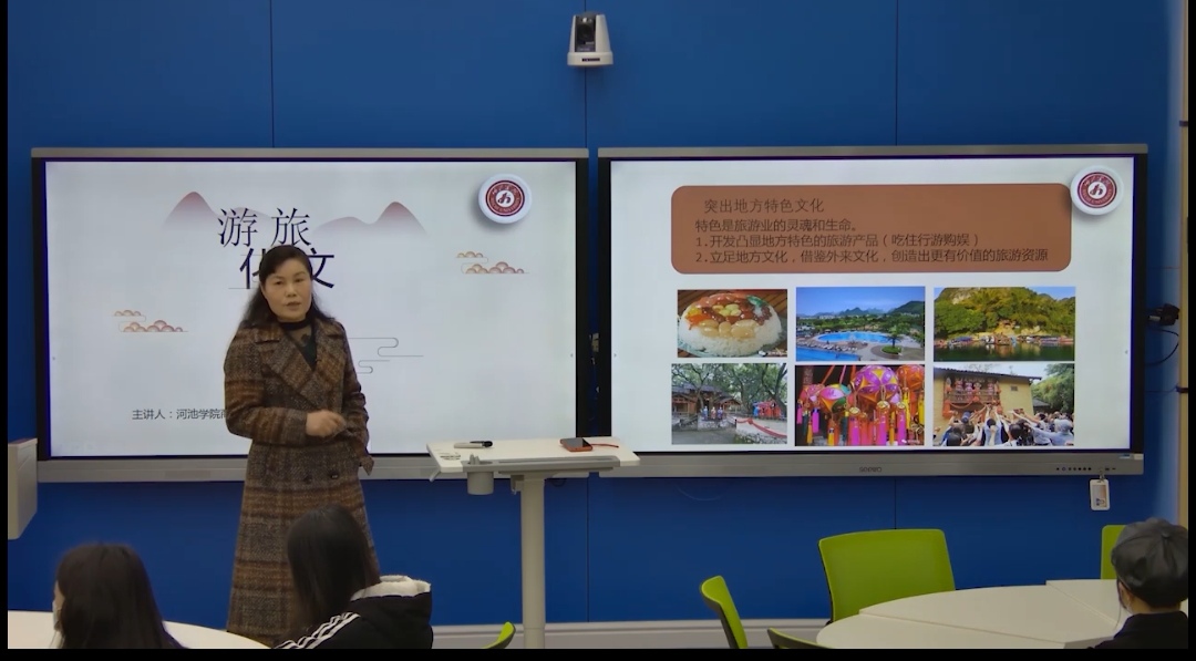 公司旅游管理专业副教授罗茹及其团队申报的广西区线上线下混合式一流本科课程《旅游文化概论》打破原有“师讲生听”的“填鸭式”教学方式,采用“任务驱动”的教学理念,立足旅游业的实际,将旅游文化的理论与桂西北文化旅游的体验融为一体,突出应用型和实用性,形成“线下课堂讲授——线上自主学习——课外实践训练——课内检验总结”的线下线上、课内课外双课堂交互的混合式教学模式。