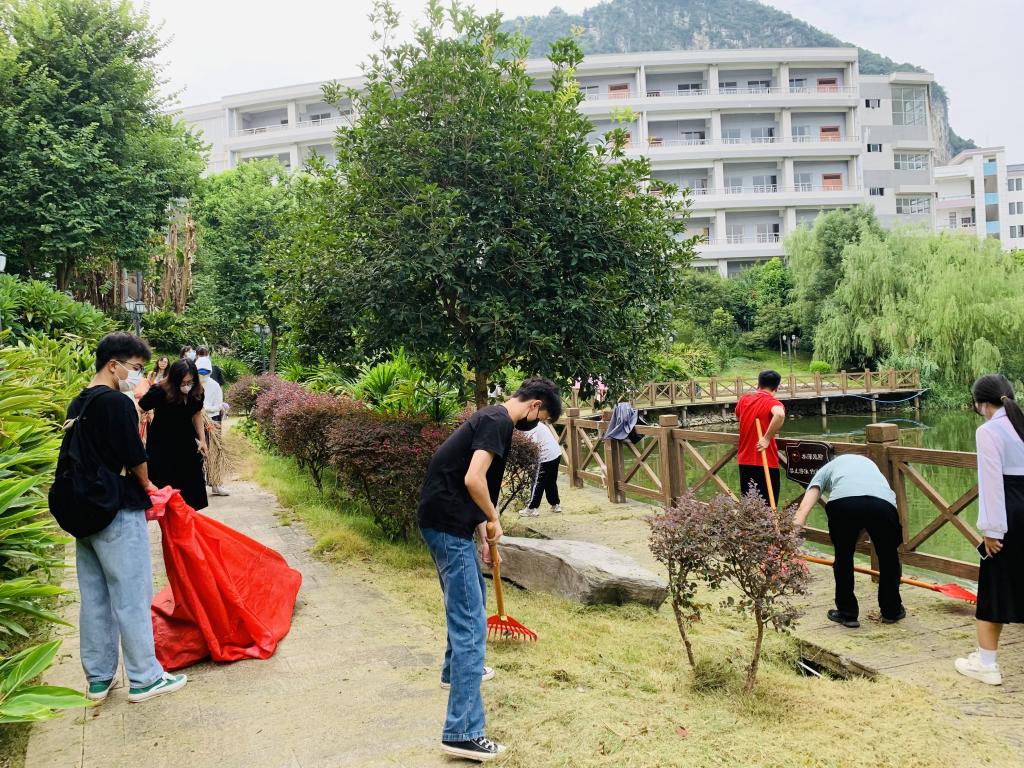 韦书觉带领师生们对公司金盆捞月周边及主干道上的杂物、绿化带内的杂草进行了清理,确保卫生清扫到位,环境整洁有序。经过大家的共同努力,改善了校园环境卫生,提升了集体卫生环保意识。