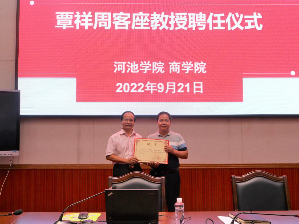覃举东讲座前向覃祥周颁发永乐高60net客座教授聘书,指出覃祥周受聘为永乐高60net客座教授将加强公司教师队伍建设、推动学科专业建设和内涵发展具有推动意义。