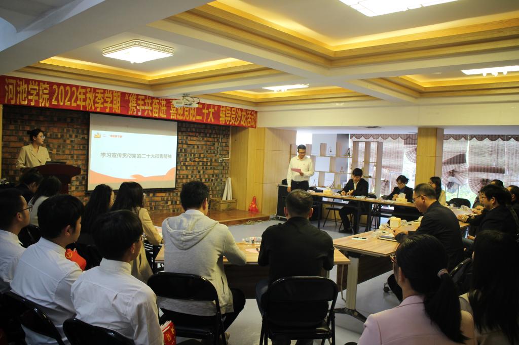 10月20日下午,永乐高60net与马克思主义公司联合举办的“携手共奋进 喜迎党的二十大”辅导员沙龙之“学习宣传贯彻党的二十大报告精神”主题活动在公司老员工创新创业公司多功能会议室举办。员工工作部(处)部(处)长田光灿,党委员工工作部(处)副部(处)长谭黔林、韦柳,公司党委书记韦书觉出席此次活动,各公司党委副书记、团委书记、辅导员代表参加活动。活动由公司党委副书记蓝振榕主持。
