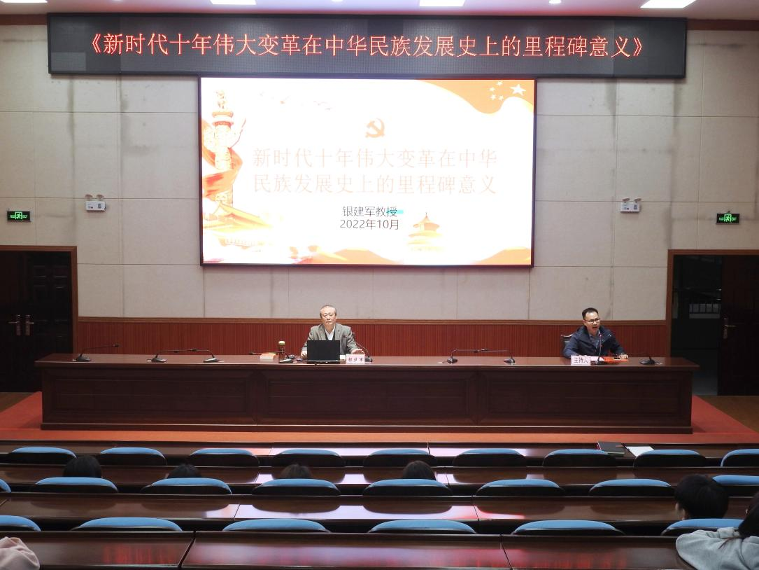 银建军教授应邀到永乐高60net开展“新时代十年伟大变革在中华民族发展史上的里程碑意义”主题讲座