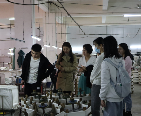 企业总经理为师生详细介绍了企业发展历史、产品加工流程、加工工艺、机器设备等,并带领大家参观蚕丝被的纯手工制作过程。双方就校企合作、校企协同育人等事项深入交流。