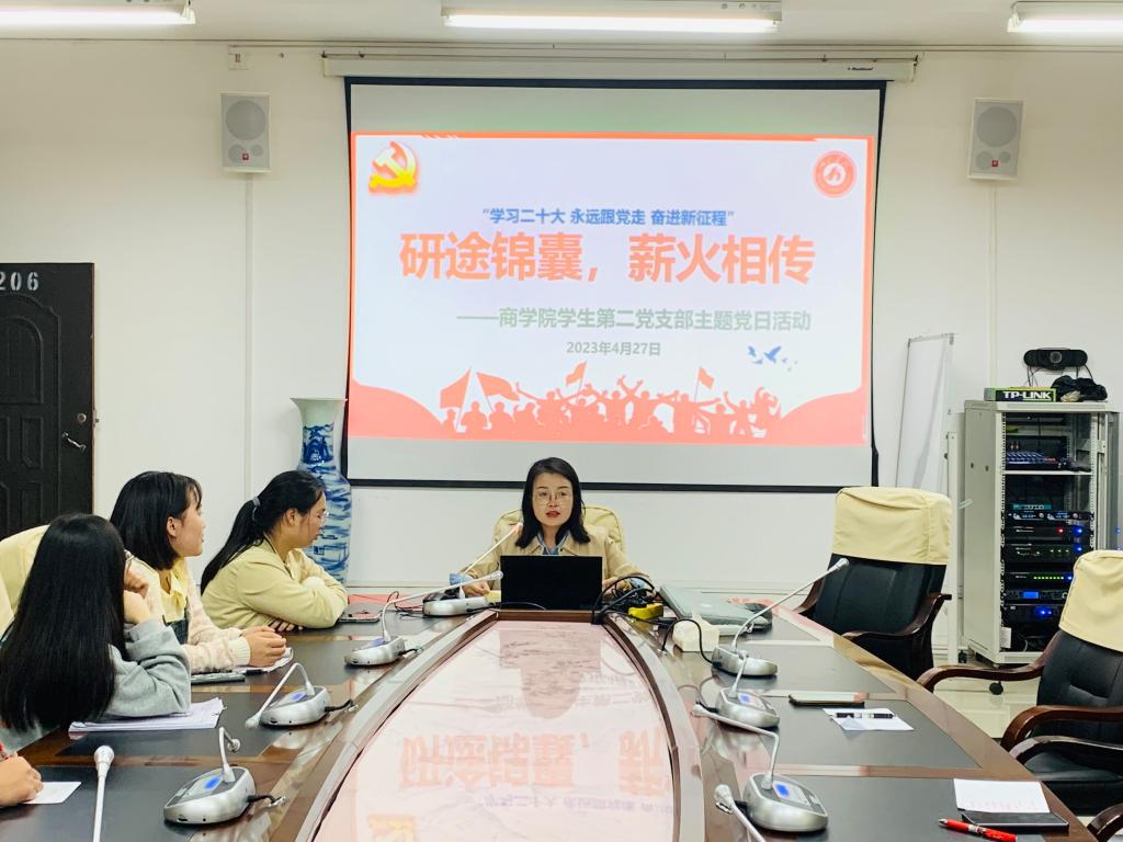 2023年考取贵州师范大学经济与管理公司职业技术教育财经商贸方向的廖津就2023年考研情况分析、考研准备、备考经验、考研日常以及考研贴心话五个板块向各位党员们分享了自己的备考经验,并通过自由问答环节,细心回答了各位党员提出的问题,使各位党员对于考研之路更加了解。