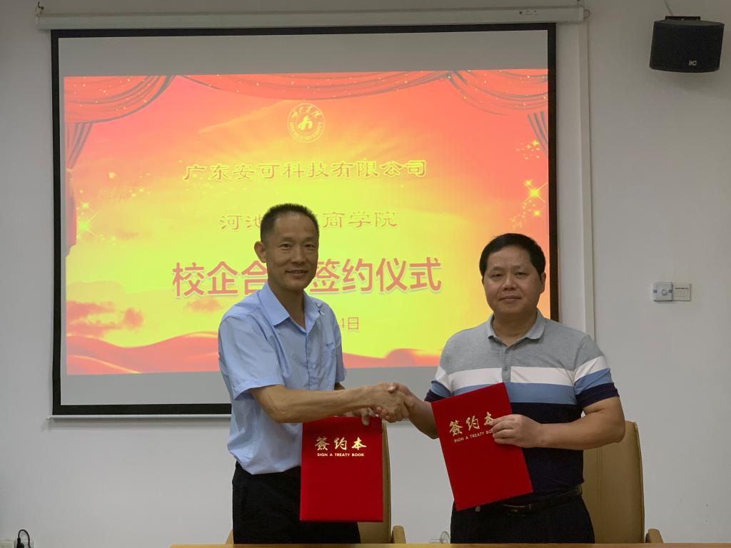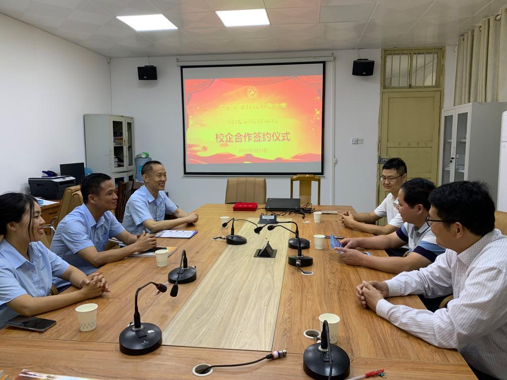 5月24日下午,公司与广东安可科技有限公司于行政楼110室举行校企合作签约仪式。广东安可科技行政部经理王立健,公司经理覃举东、党委副书记蓝振榕,安可科技人事部专员李明、技术部工程师梁锡武参会。仪式由公司经理覃举东主持。