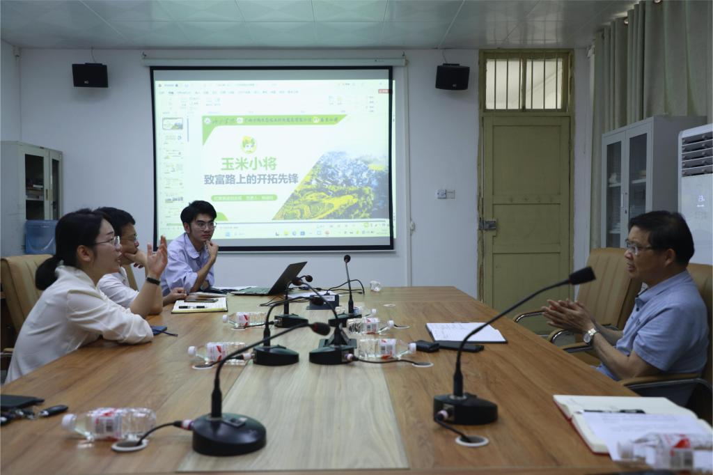 公司市场营销专业222A班的钟进柱作为红旅赛道项目“玉米小将”负责人在会上进行项目展示讲演,并就“互联网+”创新创业大赛的问题与参会领导及老师进行了充分交谈。