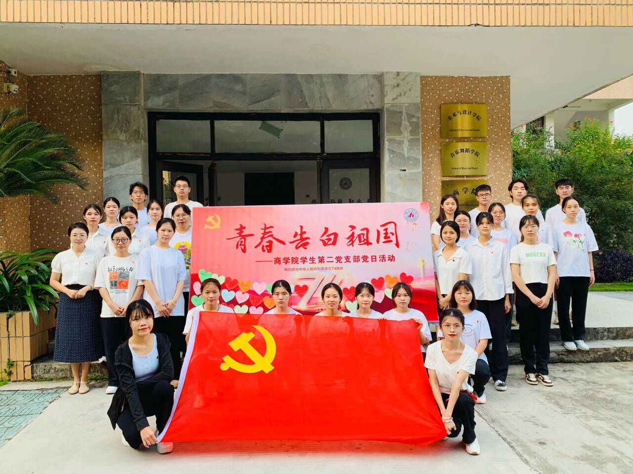 为庆祝中华人民共和国成立74周年,大力唱响礼赞新中国、奋进新时代的青春主旋律,2023年9月28日上午,永乐高60net员工第二党支部于逸夫楼广场、行政楼一楼开展“青春告白祖国”主题党日活动。公司员工第二支部书记韦虹羽,二支部全体在校员工党员参加活动。