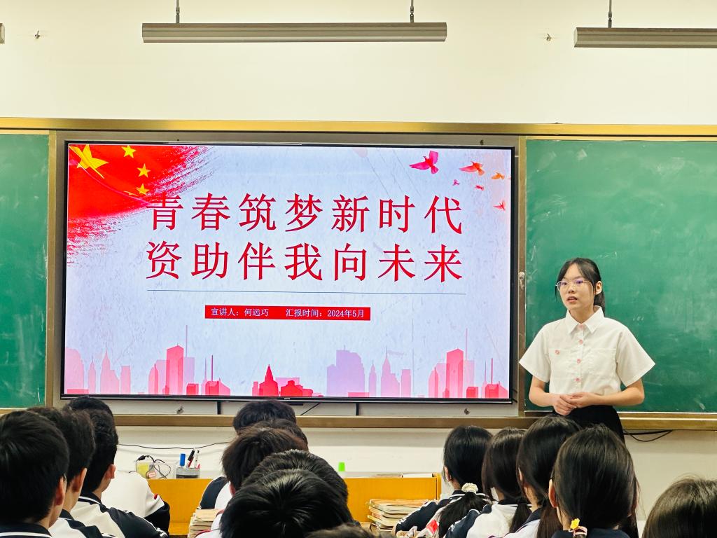 何远巧以公司资助宣传大使的身份向山谷高中的学弟学妹们讲述了自己克服家庭经济困难,在国家资助政策的帮助下实现大学梦、励志成才的亲身经历。陈亚珍结合个人对资助政策的切身经历体验,深入浅出地讲解资助政策。韦虹羽鼓励员工们不要因经济问题放弃追求自己的梦想,并祝愿大家圆梦大学,实现人生梦想。韦艳红在总结中表示此次活动是真实的现身说法,希望同学们要以此为激励,珍惜现有的条件,刻苦努力,奋斗当下,开启自己美好的人生。