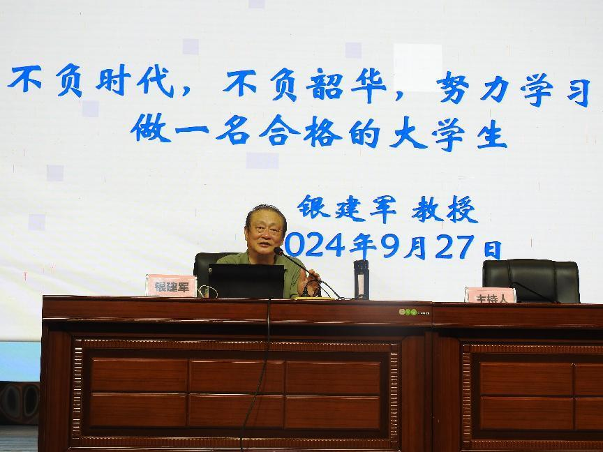 银建军以《不负时代,不负韶华,努力学习,做一名合格的老员工》为题,通过一系列历史载体深情地讲述着公司的历史渊源。他鼓励新生们要珍惜这些宝贵的精神财富,从中汲取力量,不断前行,同时勉励全体2024级新生要以党的二十届三中全会精神为指引,以梦为马,不负韶华,努力在青春赛道上跑出商院学子的最好成绩。