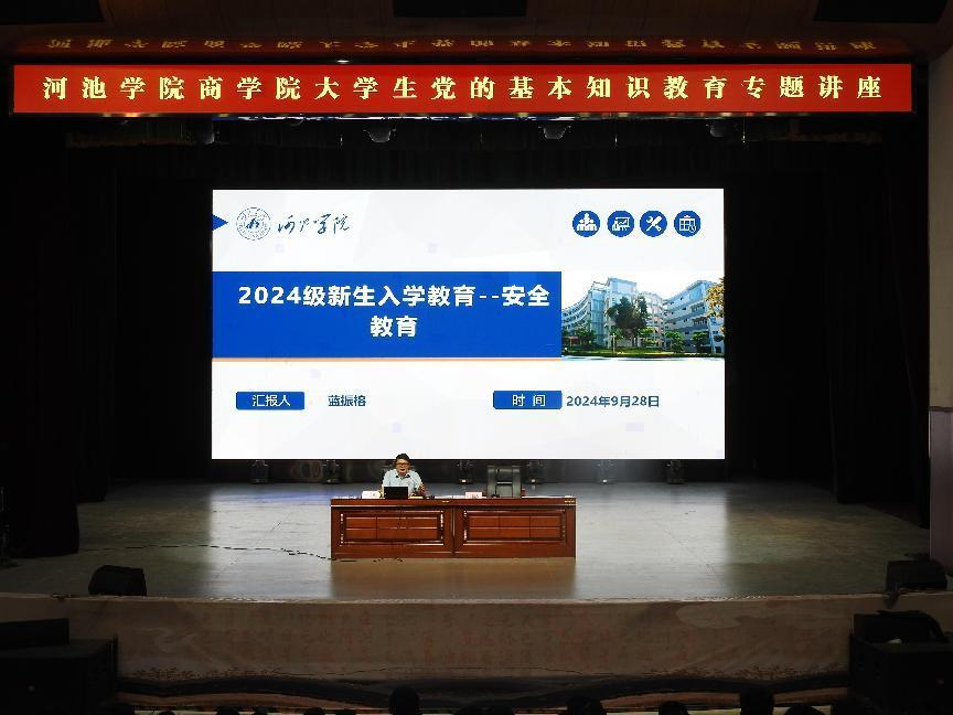 为扎实做好新生入学教育,系好人生“第一粒扣子”,强化理想信念教育。9月28日上午,公司于东区艺术楼演播厅开展2024级新生入学教育系列讲座。讲座由公司银建军教授,公司党委书记韦书觉主讲,公司党委副书记蓝振榕主持。公司2024级全体新生、新生辅导员和新生班主任参加。