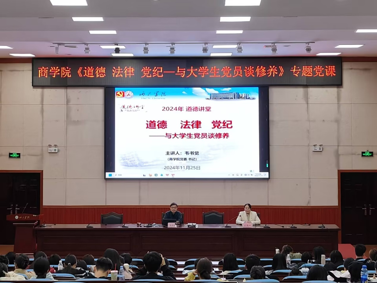 韦书觉以《道德法律党纪—与老员工党员谈修养》为题,从“为什么要谈道德修养?”、“为什么要谈法律修养?”、“为什么要谈党纪修养?”三个方面带来了一场生动精彩的专题讲座,引导广大师生党员讲党性、守党规、严党纪、强化员工党员的信仰、信念和信心。