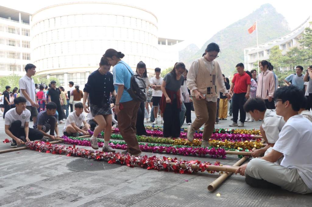 此次活动中,党员同志们一齐观赏“广西三月三,河院嘉年华”活动开幕式,在沉稳矫健的宜州舞猫狮表演中感受浓郁的宜州风情;在广西山歌合唱中感受壮族儿女热爱生活的豪情;在刚柔相济的武术表演中领悟中华民族对搏击的独特之道。党员同志们在共享美食活动中学习美食背后的故事和独特文化;在背篓投绣球、旱地龙舟、竹竿舞等民族传统游戏中营造独特的壮乡记忆;在团委、易班发展中心及易班各二级站的趣味小游戏中共同绘制独属“广西三月三”的民族情谊。