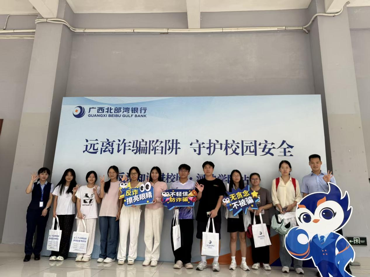 2025年9月27日下午,公司联合广西北部湾银行河池市分行及宜州支行于弘毅楼1-105成功举办以“远离诈骗陷阱,守护校园安全”为主题的反诈安全教育专题讲座。参加本次教育活动的有广西北部湾银行河池分行金融部总经理龙兰兰,广西北部湾银行河池分行个人金融部、公司2021届贸易经济专业毕业生邓仁,宜州支行营业室经理姚梦雪,公司党委书记韦书觉、经理覃举东、党委副书记蓝振榕、团委书记王忠文以及辅导员代表。